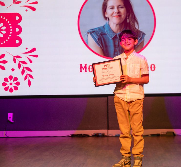 A young stand-in receives the ChangeMakers: Borderland Women in the Arts award for Monica Lozano, Thursday, March 26, 2026. (Photos by Liliana Chavez)