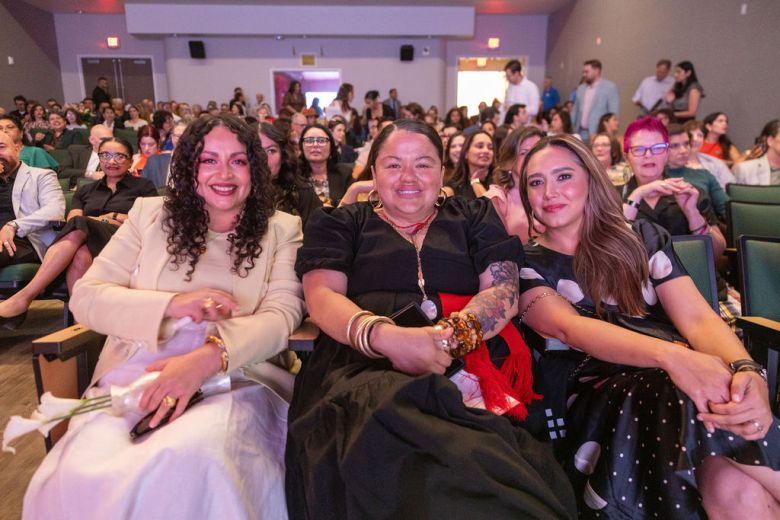 From left: Honorees Maria Garcia, Soila Hernández Fierro and Yvonne Enriquez await the start of the 2026 ChangeMakers award ceremony honoring Borderland Women in the Arts. Thursday, March 26, 2026. (Photos by Liliana Chavez)
