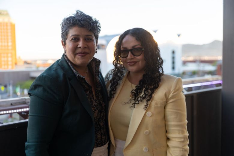 Honoree Christin Apodaca, left, at the 2026 ChangeMakers: Borderland Women in the Arts VIP reception in the terrace of the Mexican American Cultural Center. (Photos by Liliana Chavez)