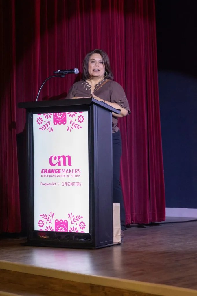 El Paso Matters Editor Cindy Ramirez speaks about the news organization’s role in the arts community during the 2026 ChangeMakers: Borderland Women in the Arts award ceremony, Thursday, March 26, 2026. (Photos by Liliana Chavez)