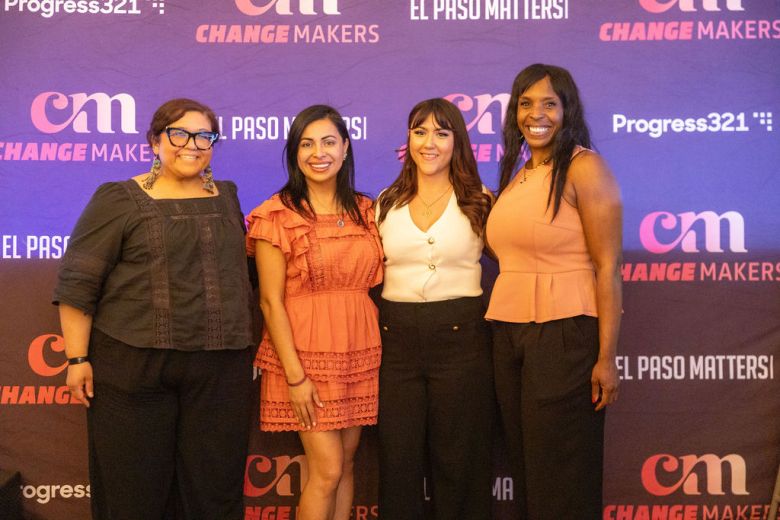 Rebecca Ann Muñoz, left, director of the El Paso Mexican American Cultural Center, poses with members of Progress321 during the 2026 ChangeMakers: Borderland Women in the Arts event, Thursday, March 26, 2026. (Photos by Liliana Chavez)