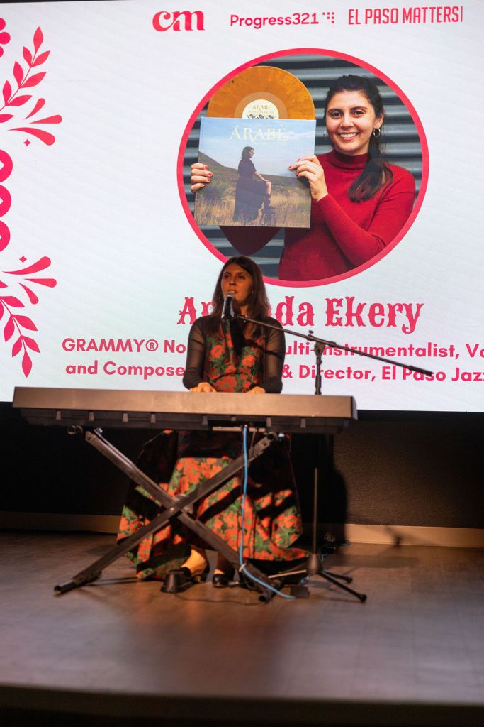 Guest speaker Amanda Ekery, a native El Pasoan instrumentalist, vocalist and composer who was recently nominated for a Grammy Award in the Best Album Notes category, performed a medley of her original songs from her album, “Árabe.” The album, she said, celebrates the shared Mexican and Syrian history and culture in El Paso.