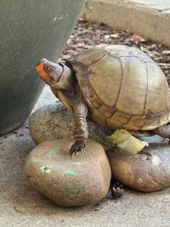 Like most tortoises, Bobbie hibernates during the winter months. Now that spring has sprung, Bobbie has returned to his duties.