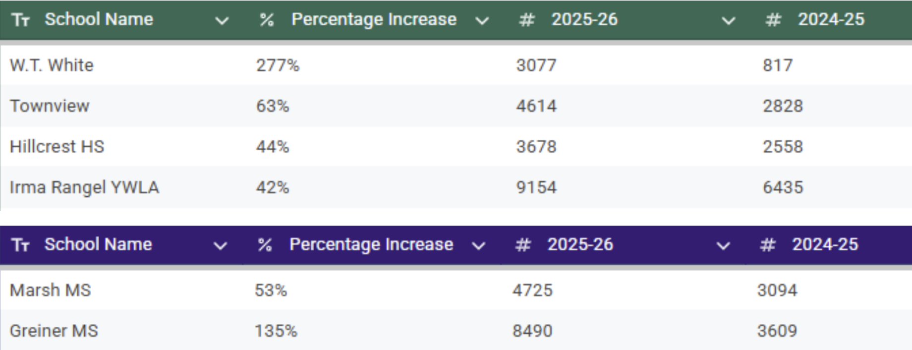 The 21% increase in physical book checkouts suggests a positive response to the district’s new device-free policy and other programs that encourage reading, with librarians reporting a noticeable surge in library traffic and reader engagement. This growth aligns with the district’s goal to push circulation back to pre-pandemic highs. See graphic below for larger increases at specific campuses.