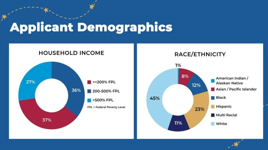 According to the final numbers, nearly three-quarters of the applications came from low- or middle-income students. 37% came from families living at or below 200% of the federal poverty level. 36% were between 200-500% of the federal poverty level.