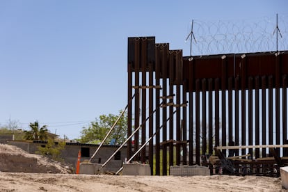 Equipo de construcción para la frontera México, Estados Unidos en Sunland Park, Nuevo MéxicoConstruction work on the border wall between the United States and Mexico in Sunland Park, New Mexico.Gaby Velasquez/ El Paso Times, Puente News Collaborative