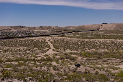The border wall cuts through the desert landscape near Sunland Park, New Mexico.Gaby Velasquez/ El Paso Times, Puente News Collaborative