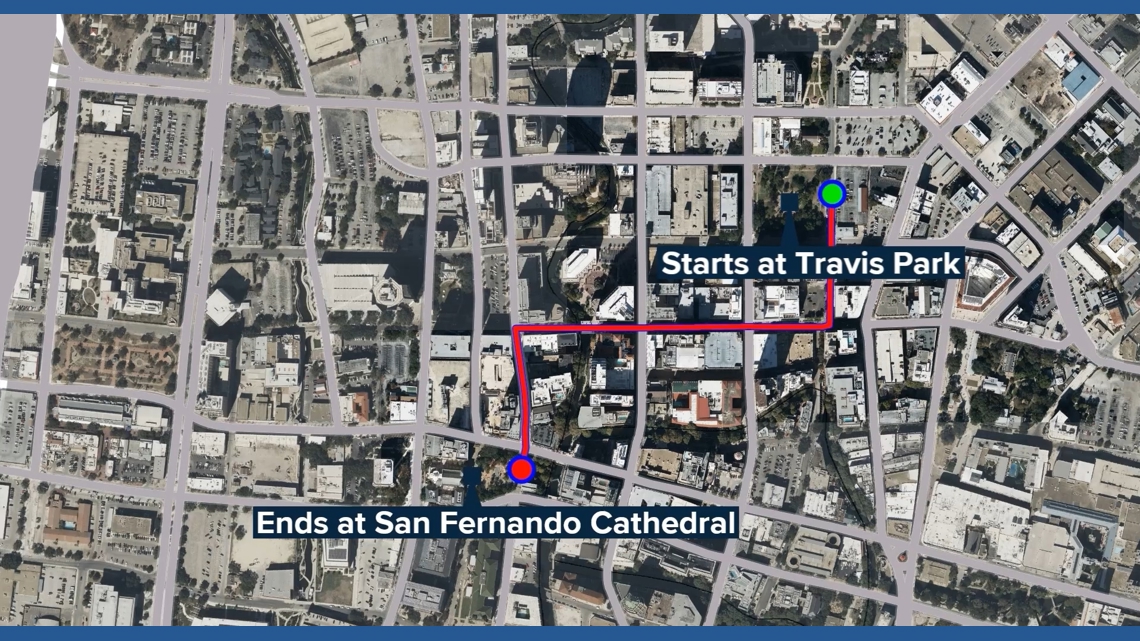 Organizers say the reenactment will conclude around 12:30 p.m. at San Fernando Cathedral, where three crosses, representing Jesus and the two thieves crucified alongside him, will mark the end of the journey.