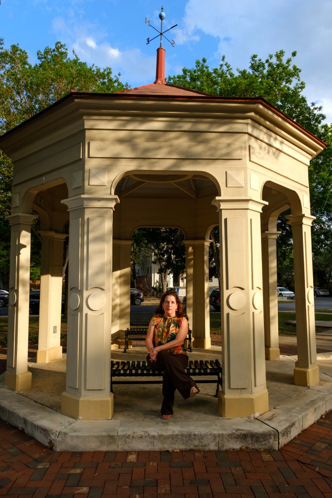 Tina Garza poses for a portrait in King William Park. Credit: Clint Datchuk for the San Antonio Report