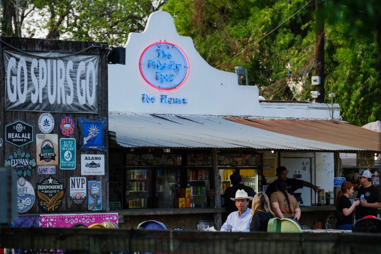 Patrons enjoy beverages at The Friendly Spot Ice House in King William. Credit: Clint Datchuk for the San Antonio Report
