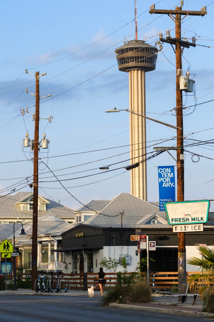 The view of the Tower of the Americas from the King William neighborhood. Credit: Clint Datchuk for the San Antonio Report