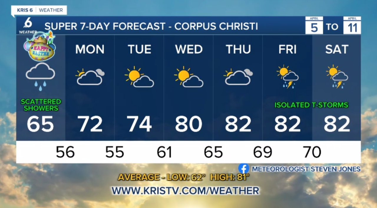 As we head into Monday morning we’ll likely see the rain chances fizzle out, but the cool weather will remain in place to start the week into Tuesday. We’ll warm back into the 80s by the middle of the week with winds back out of the southeast. Luckily, another rain chance is on the board as we head into next weekend! Right now Friday and Saturday next week look to bring another round to the Coastal Bend potentially, but with so much time to go make sure to check back for updates throughout the week!