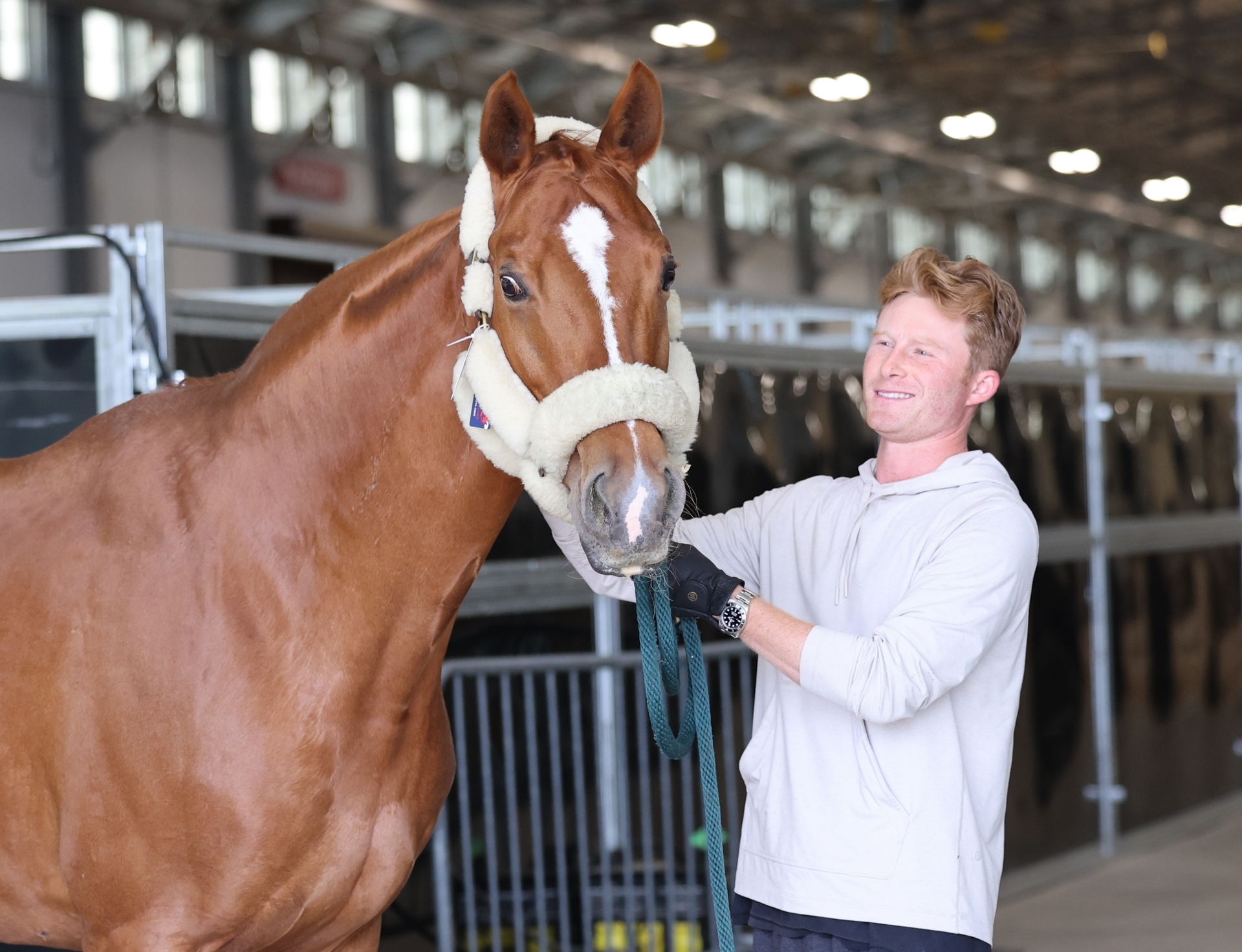 Benjamin Ebeling with Bellena in the stables for the dressage World Cup Final. © 2026 Ken Braddick/DRESSAGE-NEWS.com
