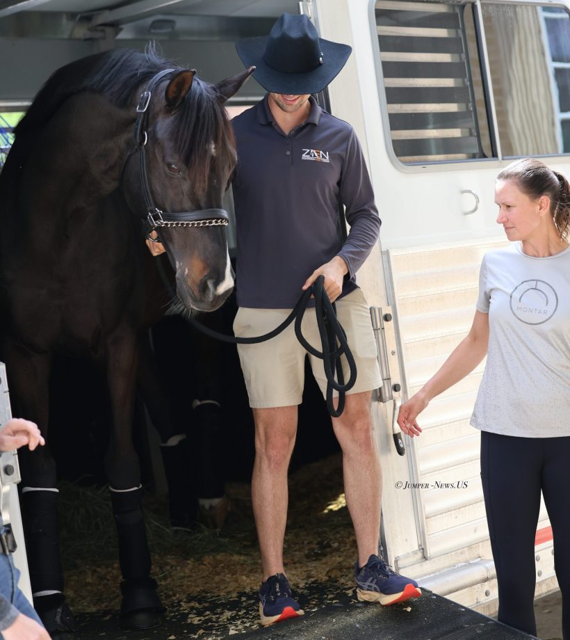 The 11-year-old gelding Cody was among those arriving after being competed in jumping in Florida throughout the winter by Germany’s Rene Dittmer.