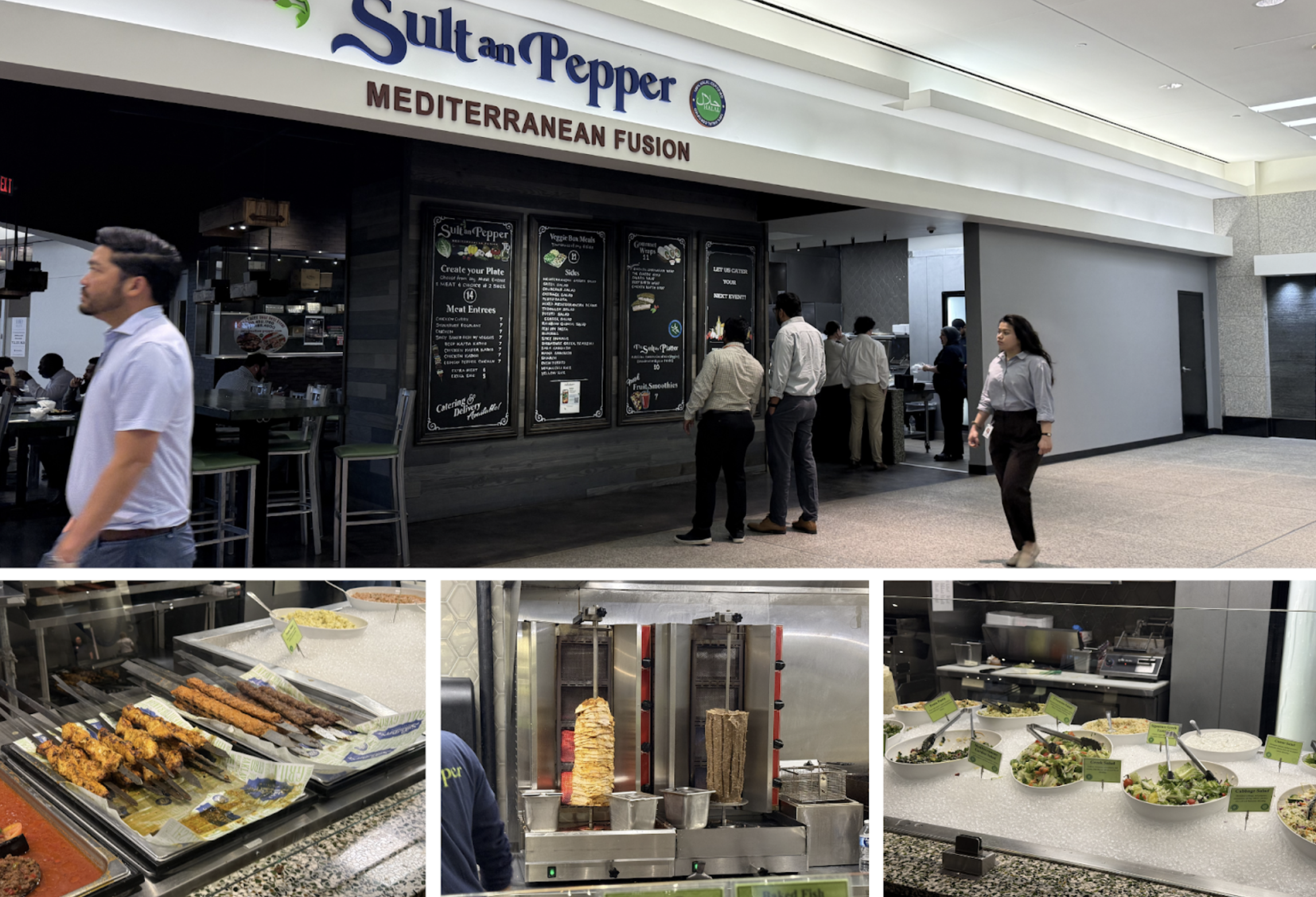 One of the first areas I explored was near the Lamar Tunnel, where I found Sultan Pepper, a Mediterranean restaurant, and El Regio Mexican Grill located across from each other. Both offered appealing menu items such as kebabs, salads, taco bowls, and soups.