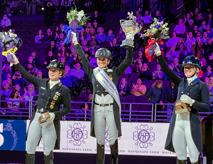 World Cup champion Jessica von Bredow-Werndl (center) with Nanna Skodborg Merrald (silver, right) and Isabell Werth bronze in 2023. © Ilse Schwarz/DRESSAGE-NEWS.com