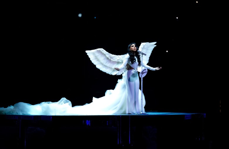 Toni Braxton, who recently broke her arm in an accident at home, did not let the cast slow her down as she moved through hit after hit, eventually rising above the stage in massive angel wings while belting out the chorus to “Un-Break My Heart.”