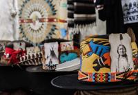 Native American beaded hats lay lined up on a table during the Native American Student Association’s 30th annual Benefit Powwow on April 4 at the Maverick Activities Center. Beads are a staple in Native American art.