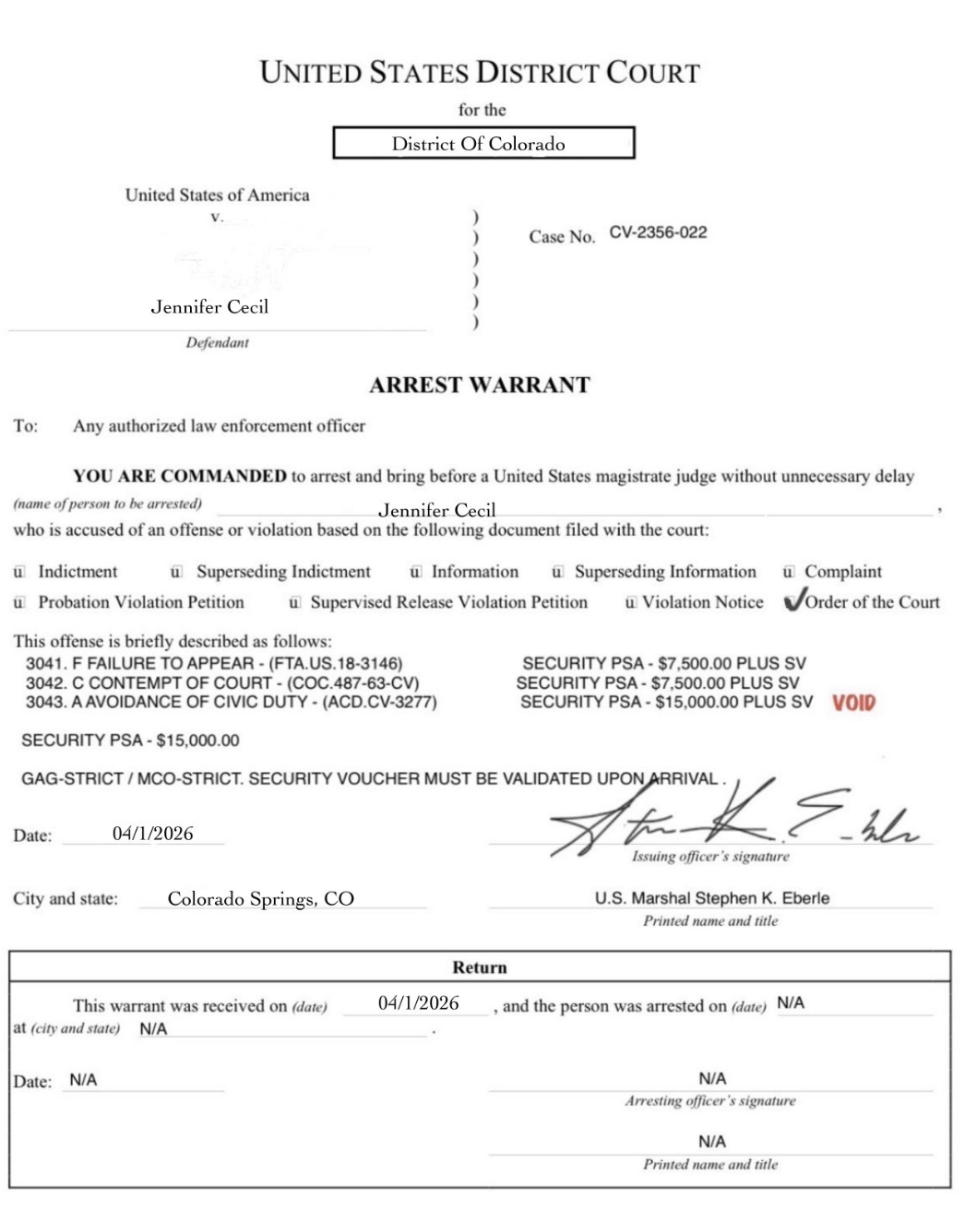 Cecil also received a text message with a picture of a so-called arrest warrant. The warrants have some discrepancies.