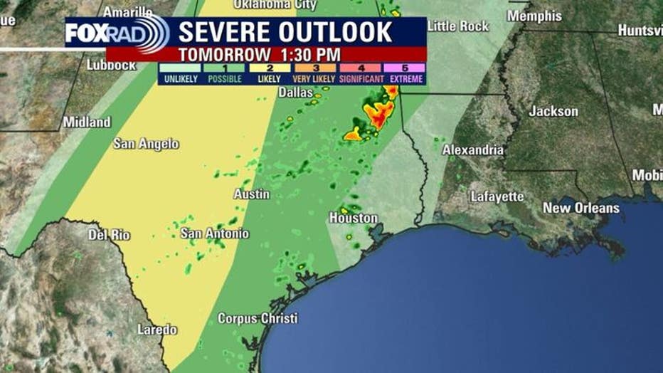 The highest chance for strong storms (and briefly severe) will be west-northwest of the greater Houston area.