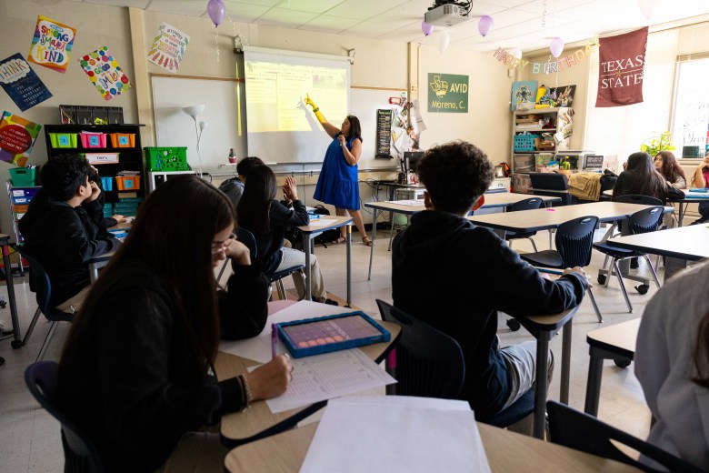 Leading up to the test, school days are brim with practice drills, pep rallies and staff pulling off silly stunts to energize kids. At Wilson Elementary School, teachers went viral for producing a parody music video of Bad Bunny’s 2022 “Tití Me Preguntó,” replacing the first lines with “My teacher told me that I’m gonna pass STAAR test.”