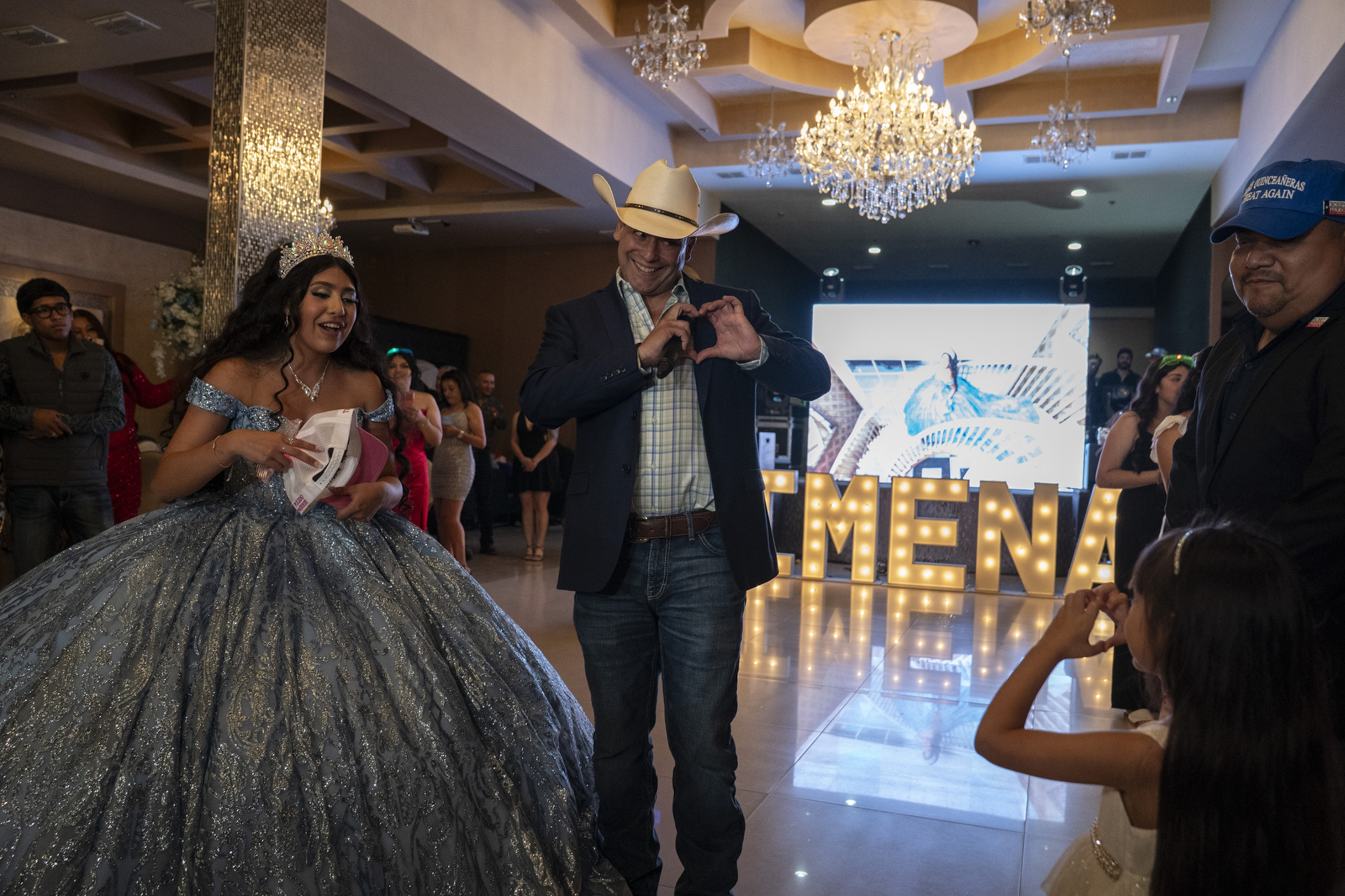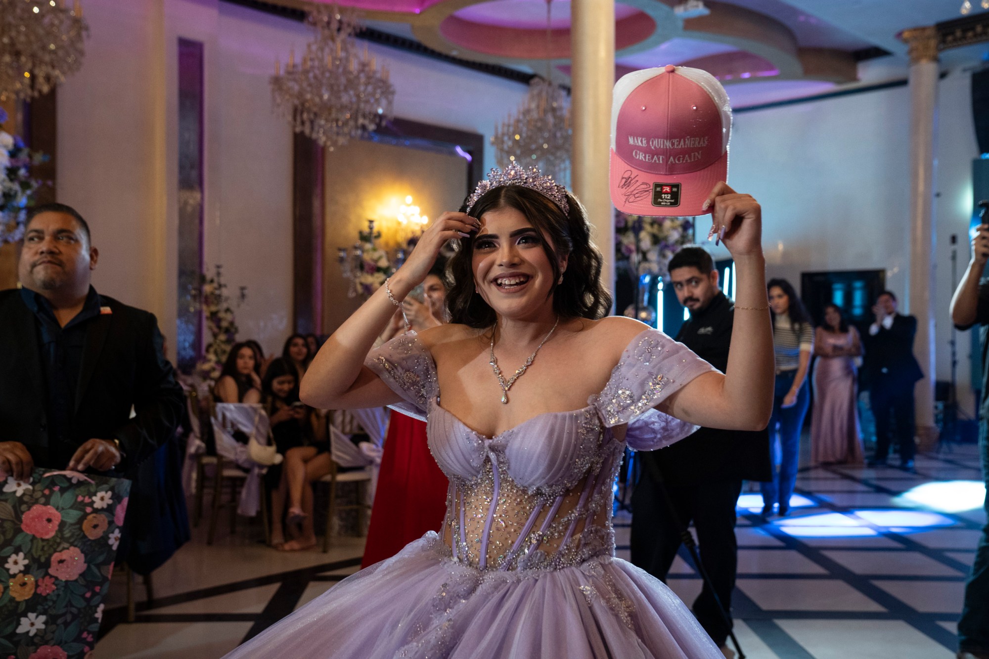 At the quinceañera, Pulido gave Jimena Sáenz a pink hat labeled “Make Quinceañeras Great Again” and autographed by the Tejano singer.