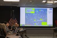 A map, titled Primary Activation Areas, is projected on a screen.