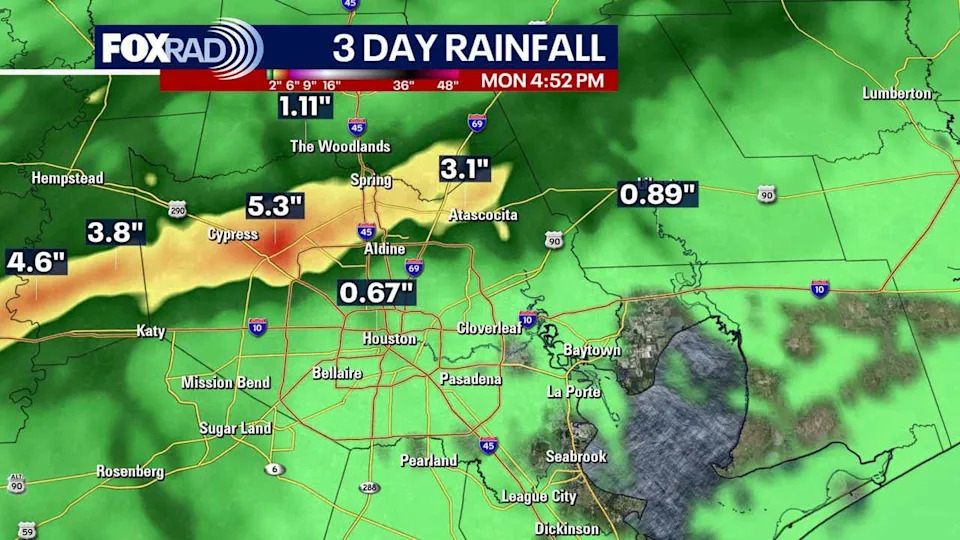 HOUSTON – A few spotty showers will be possible in the Houston area on Monday night ahead of warmer temperatures this week.