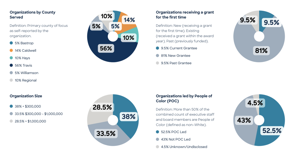 Twenty-one of the 63 applicant organizations were awarded grants across five counties through this open call. These grants align with the Foundation’s Civic Health funding priority and advance its 2030 Impact goal of increasing the number and strength of locally rooted networks in Central Texas communities with the greatest health needs.