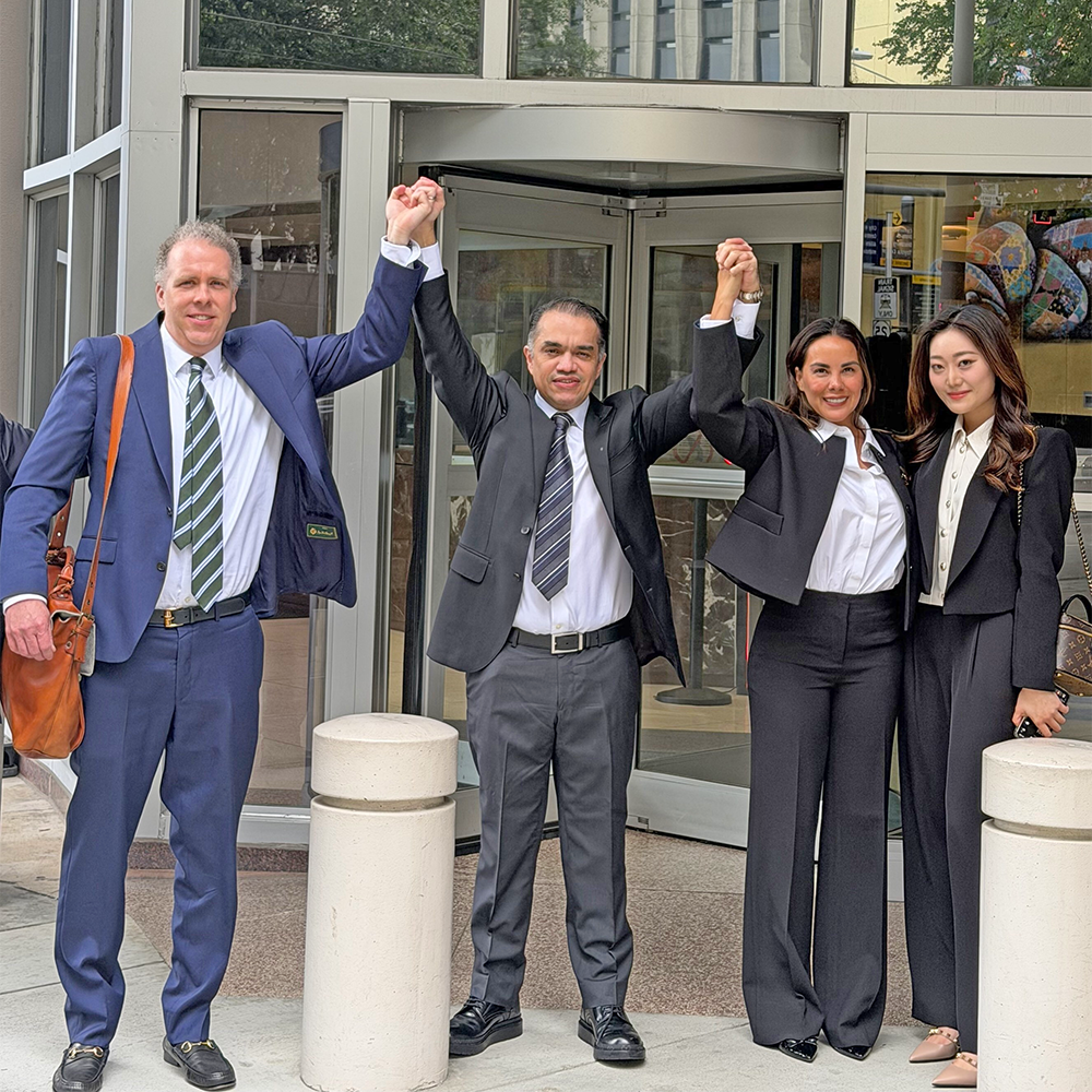 Ramón Alexandro Rovirosa Martinez celebrates his acquittal and release with his wife Tanya (right) and lead defense attorney Ryan McConnell (left), courtesy photograph.