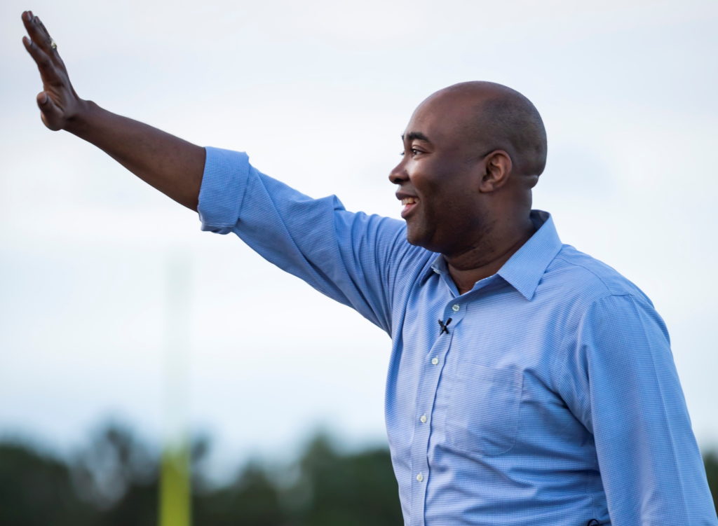 Democratic U.S. Senate candidate Jaime Harrison holds a drive-in campaign rally at Wilson High School in Florence, South Carolina, U.S. October 24, 2020. Photo by Sam Wolfe/ Reuters