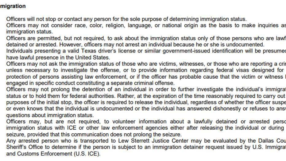 Abbott’s letter, released Thursday, notes that the city did certify in April 2025 that it would “participate fully” in all DHS programs and procedures, including the increased efforts to detain and deport undocumented immigrants. However, the letter says, a following Dallas Police Department General Order contradicts that certification.Â
