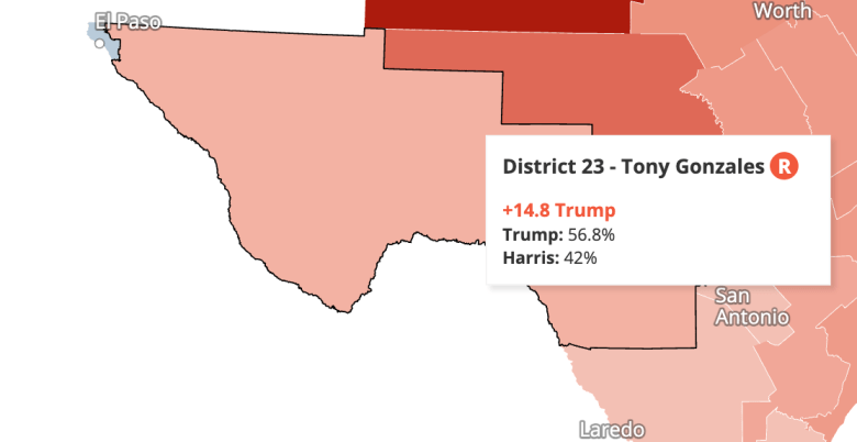The massive San Antonio-to-El Paso district is still considered quite red.