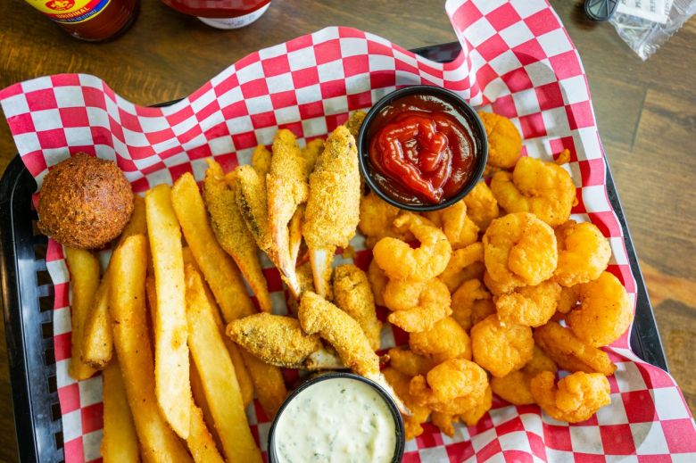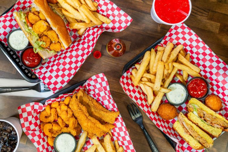 While the development team is a star-studded one, the counter-service restaurant itself is laid-back and casual. There’s even a drive-through option. The menu itself is simple, with five main proteins, including fried fish, shrimp and crab fingers, plus a crab cake sandwich and po’boys. The combos come with sides like French fries and hush puppies.