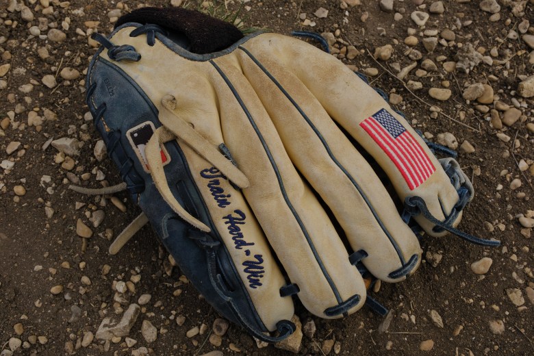 Tim Christ’s baseball glove. Credit: Clint Datchuk for the San Antonio Report