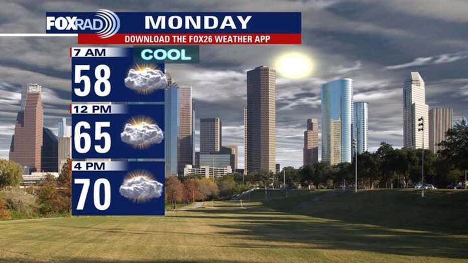 Look for mild temperatures again on Monday before a gradual rise in the afternoon highs.