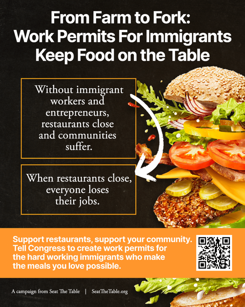 The food industry’s Seat the Table coalition states that “work permits for immigrants keep food on the table.”