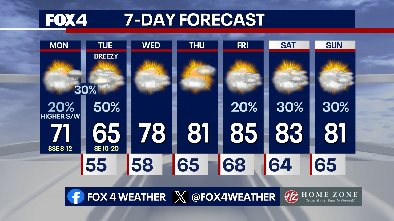 DALLAS – A typical spring pattern takes hold late this week as rain chances and warmer temperatures return to the Metroplex.