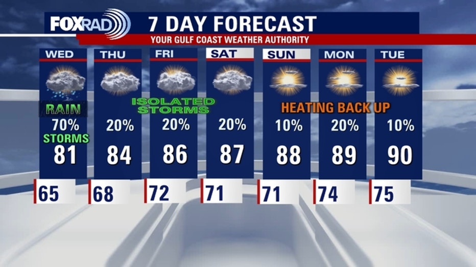 The unsettled pattern continues into Wednesday with additional showers and storms likely.Â