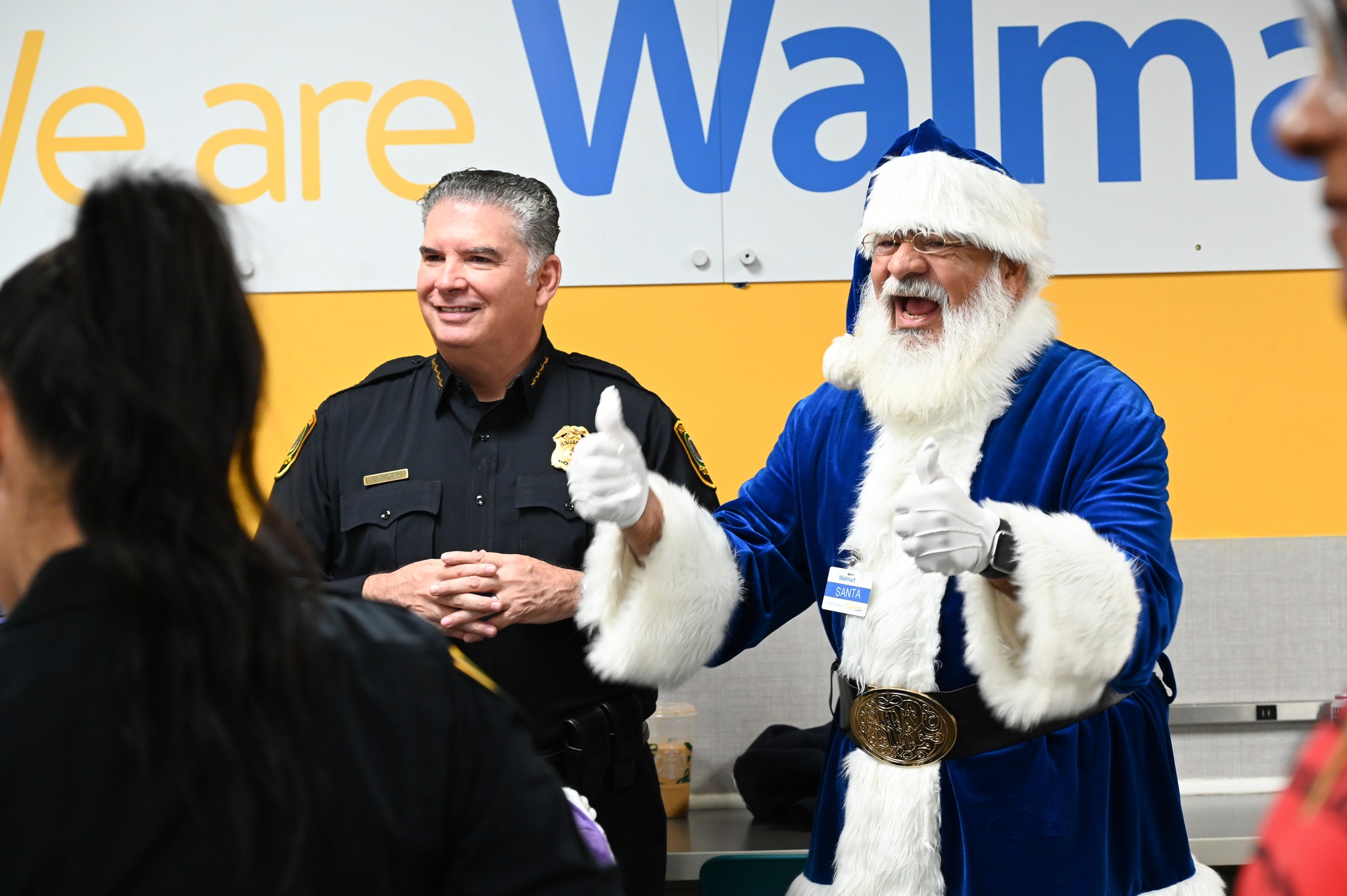 Houston Police Chief Noe Diaz stands next to “Blue Santa” at a Houston-area Walmart in December 2025.