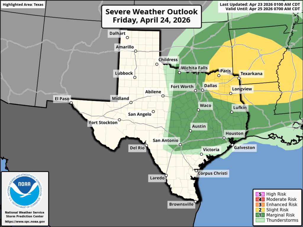 There is a marginal risk of severe weather on Friday afternoon and evening in Houston. (NOAA)