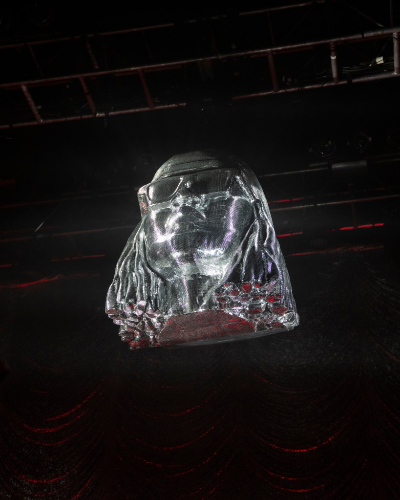A bust of Leon Thomas floats above the ceiling at House of Blues.