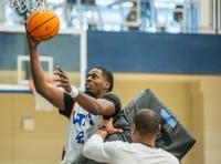 Senior guard Marcell McCreary attempts a layup during an open practice Oct. 21 at the Maverick Activities Center. McCreary is a new addition to the men’s basketball team from the University of Northern Colorado.