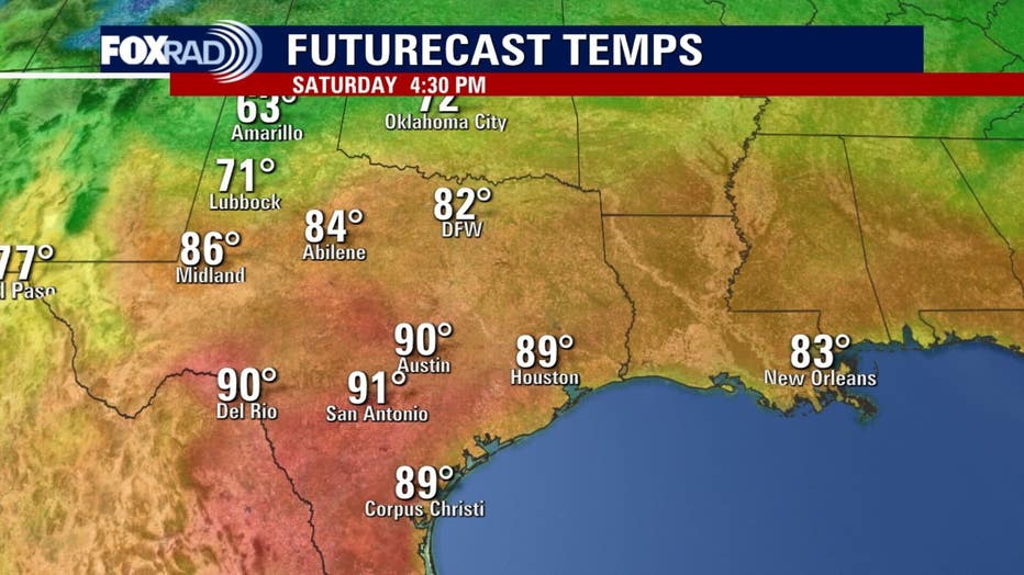 Get ready for a very warm end to the week with afternoon sun and highs hitting the mid-to-upper 80s. This warm, humid air mass has been setting the stage for patchy fog to develop overnight and linger into the morning hours through early Saturday. Don’t be surprised if visibility is low for the morning commute again, but the afternoons on Friday and Saturday will be close to the record highs of 89 degrees in Houston.