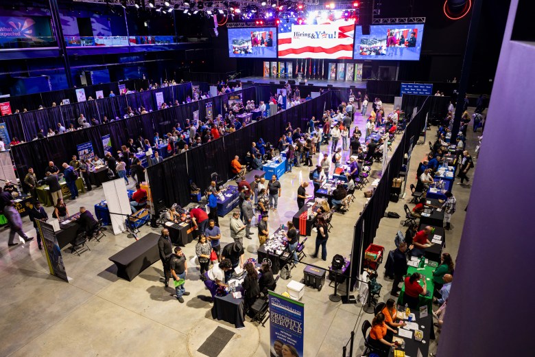 In-person recruiting events were important for filling those roles, he added, surveying a job fair full of tables and resumes and bustling with hirers and inquirers.