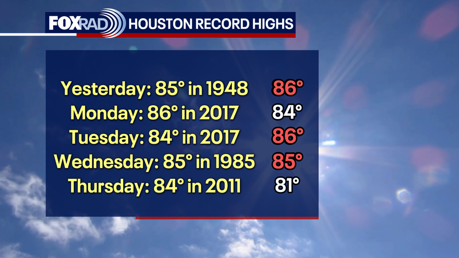 Houston set a record high temperature for yesterday afternoon. The warm trend is expected to hold through the start of the week.