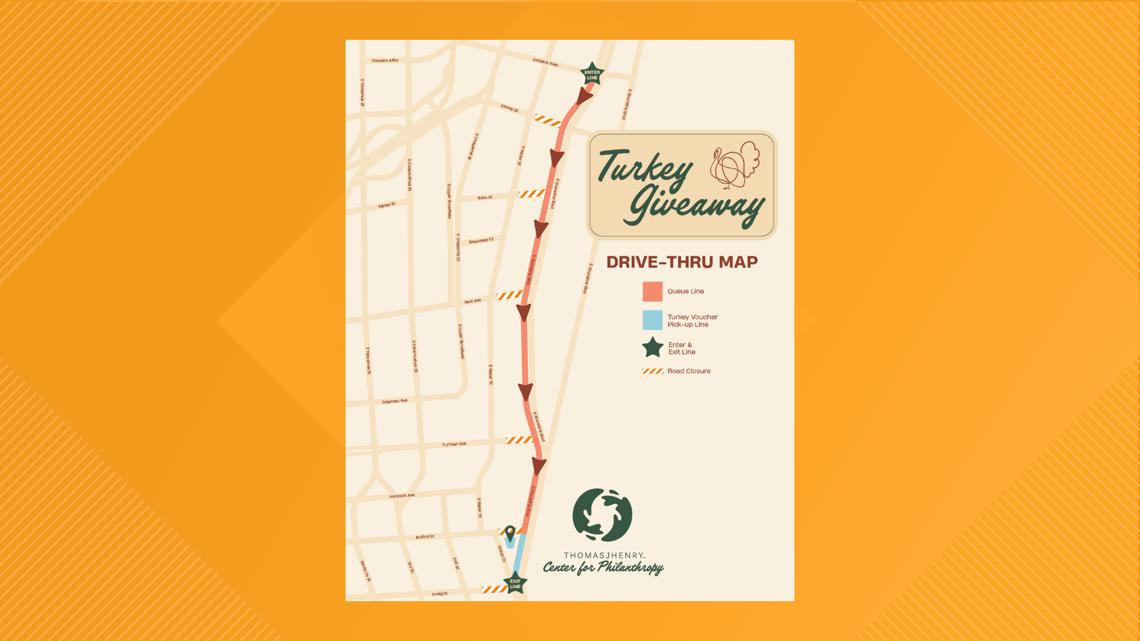 With a goal of 6,000 vouchers, organizers said the new drive-thru system will help as turkeys are given out Monday through Thursday, starting at 10 a.m.