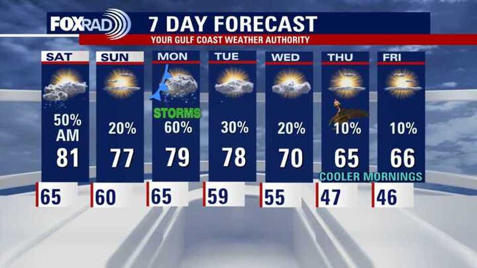 Sunday should be comfortable with a mix of clouds and sun and slightly cooler temps.Â