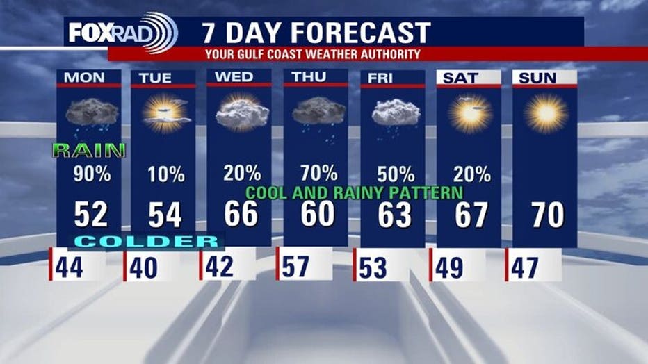 A couple of cold mornings on Tuesday and Wednesday are coming with lows in the upper 30s and low 40s.