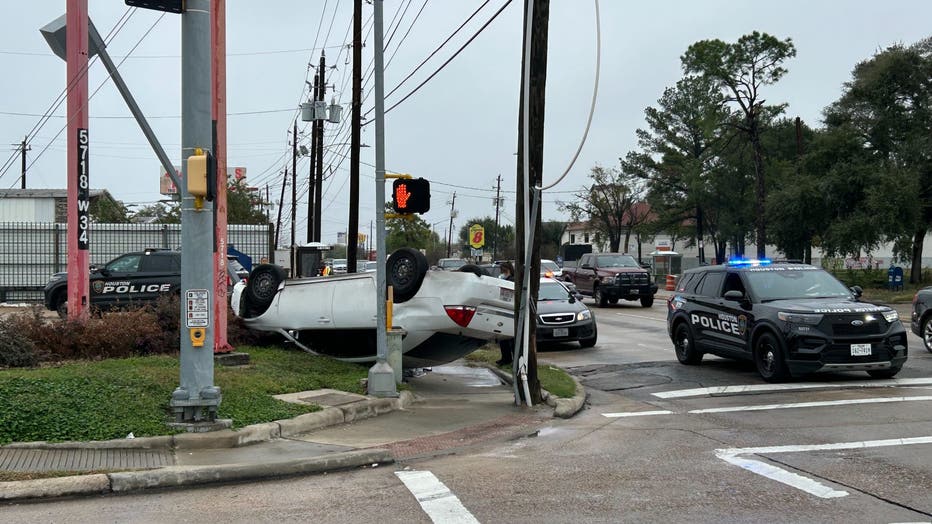 The suspect began shooting at officers out the window of his vehicle while involved in the chase, police said. It came to an end when the suspect lost control on Antoine and West 34th Street, crashing his vehicle into a pole.